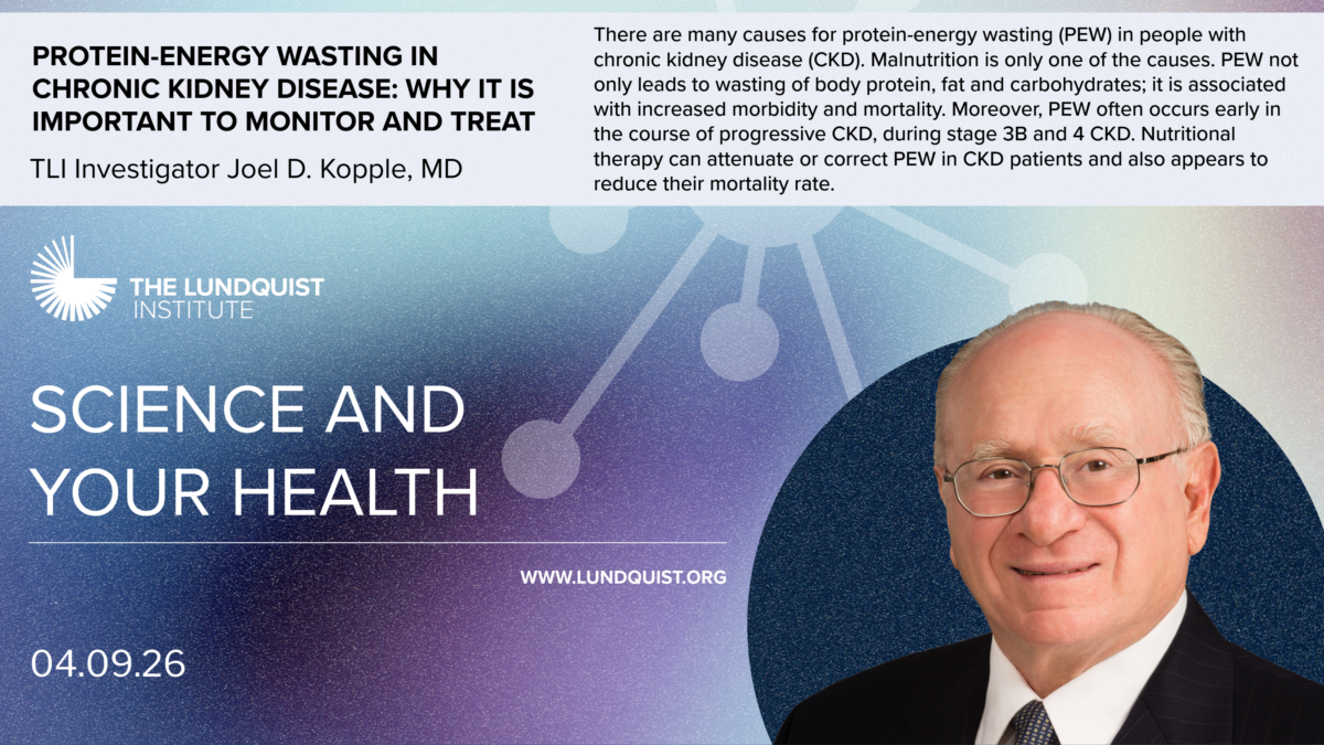 Join us in-person or online on Thursday, April 9, 2026 for an insightful discussion by TLI Investigator Joel D. Kopple, MD on protein-energy wasting in chronic kidney disease.
